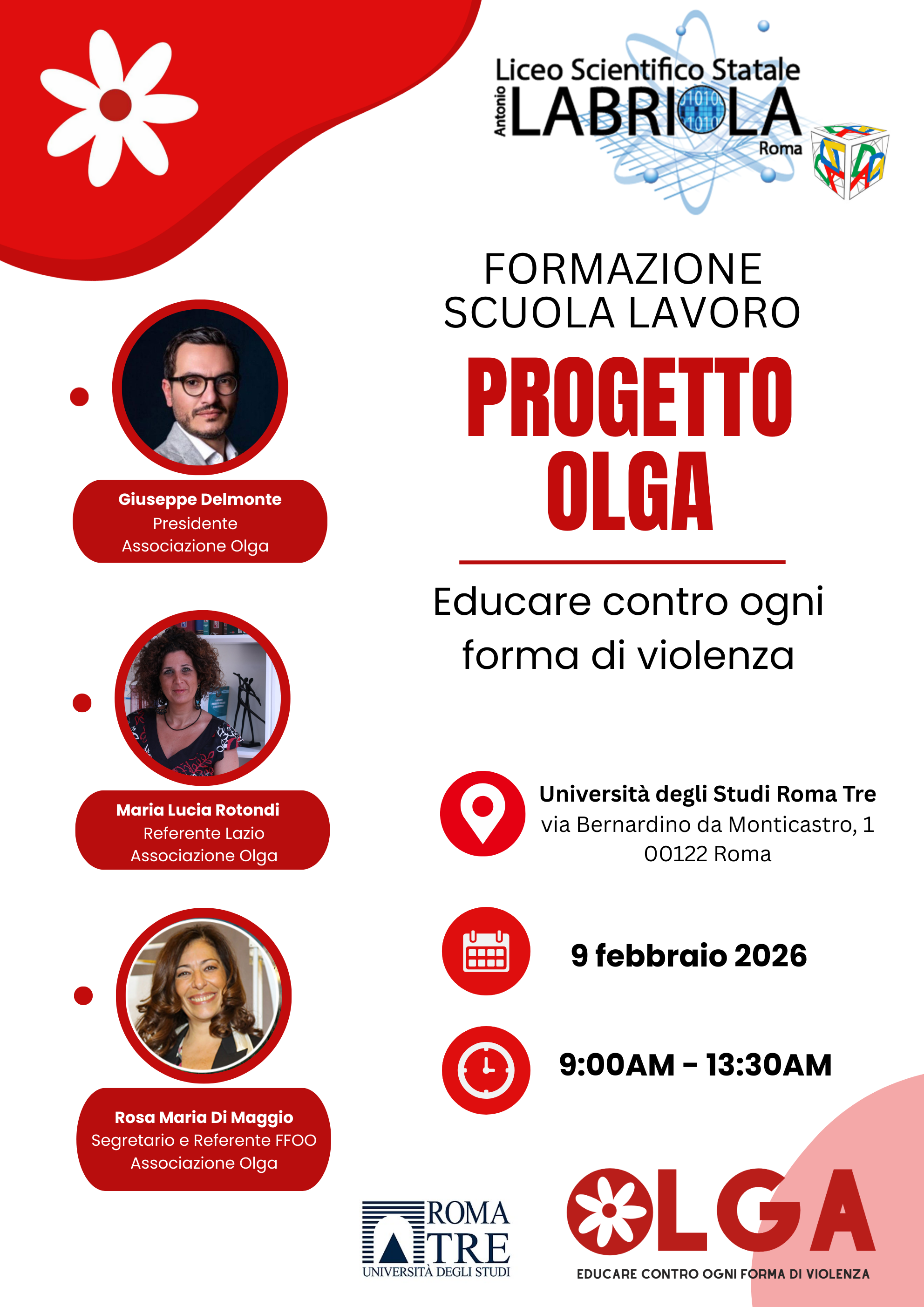 Il 9 febbraio 2026, presso il Polo Universitario di Ostia, si terrà un evento dedicato al Progetto Olga sul tema della violenza di genere.